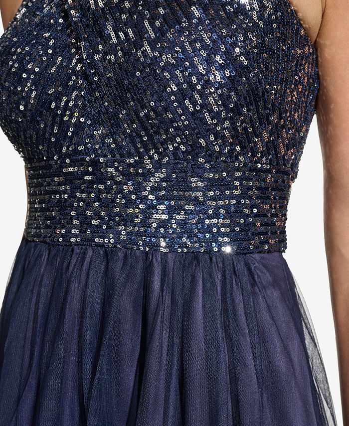 Eliza J Petite Sequin And Tulle Halter Ballgown Macy S